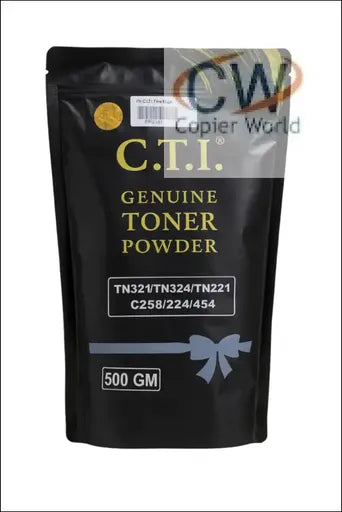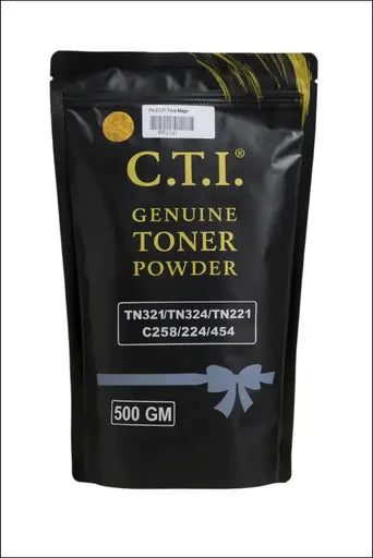 The CTI Black Toner (500gm) is a high-quality toner powder designed for use in Konica Minolta Bizhub models ZC224, C284, and C364. It delivers sharp, consistent, and professional-grade prints, ensuring reliability and efficiency for both office and commercial use.