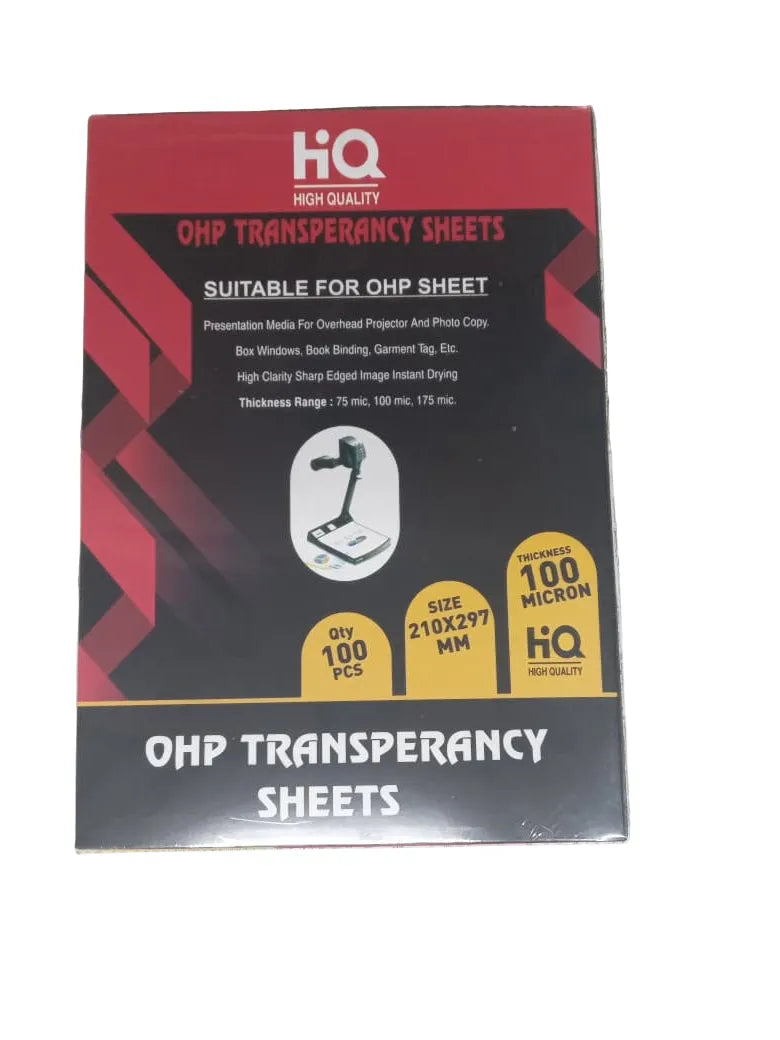 हमारी A4 175 माइक्रोन OHP पारदर्शी शीट्स से अपनी प्रस्तुति को और बेहतर बनाएँ। कॉपियर वर्ल्ड की ओर से विशेष रूप से निर्मित, ये शीट्स असाधारण स्पष्टता और टिकाऊपन प्रदान करती हैं। ये ओवरहेड प्रोजेक्शन के लिए आदर्श हैं और हर बार जीवंत प्रदर्शन सुनिश्चित करती हैं।