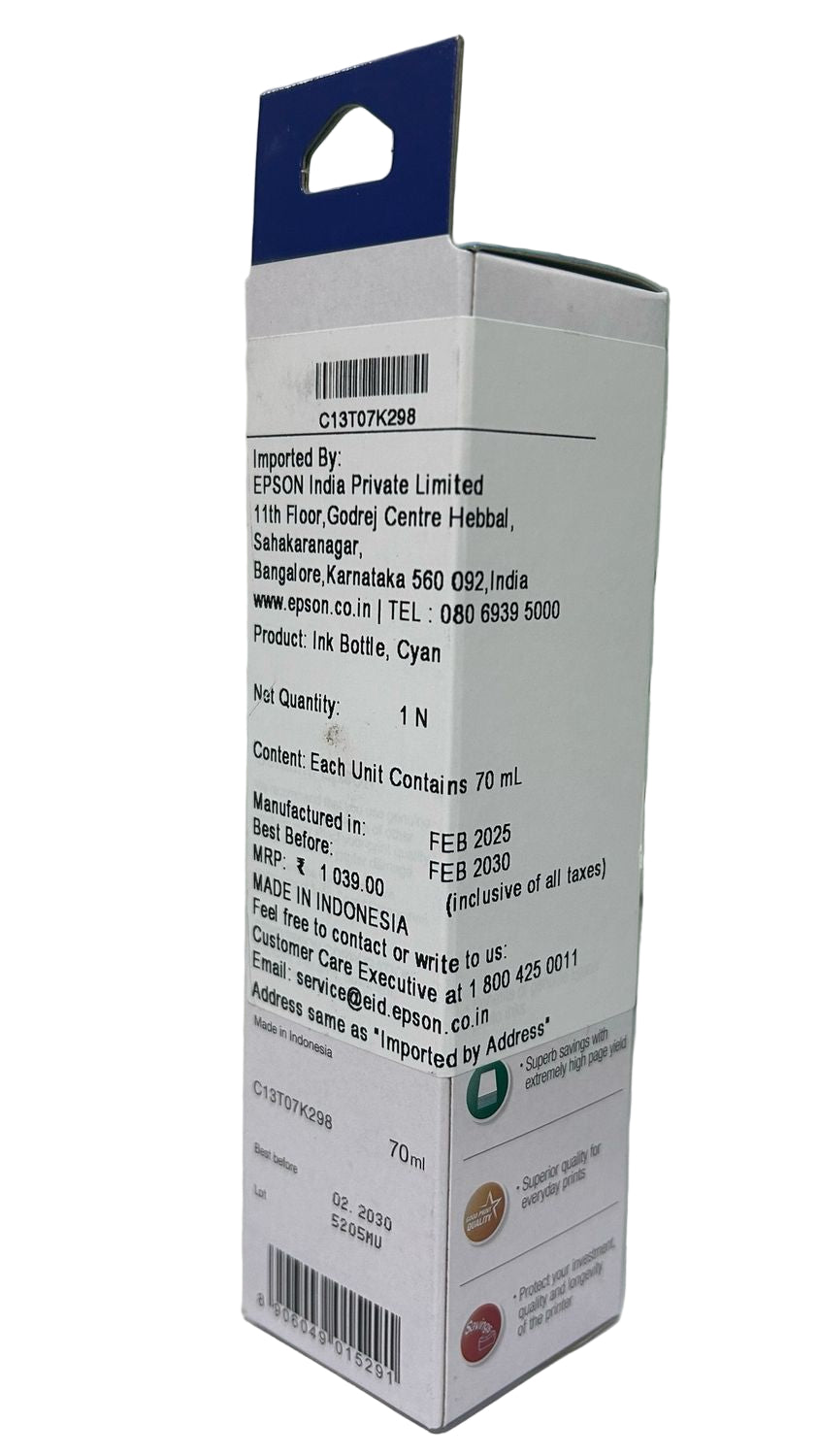 Keep your prints bright and vibrant with the Epson 012 Cyan Ink Bottle (70ml). Designed specifically for Epson EcoTank printers, this high-quality ink ensures sharp, clear, and consistent results every time. Whether you’re printing photos, documents, or marketing materials, this genuine Epson ink delivers long-lasting, smudge-resistant prints.