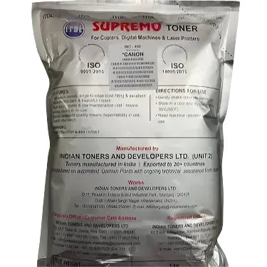 "आईटीडीएल सुप्रीमो टोनर पाउडर (1 किग्रा) उच्च-गुणवत्ता वाली प्रिंटिंग के लिए डिज़ाइन किया गया है, जो स्पष्ट टेक्स्ट और गहरे काले रंग प्रदान करता है। यह विभिन्न प्रकार के लेज़र प्रिंटर के साथ संगत है, जिससे विश्वसनीय और सुसंगत परिणाम सुनिश्चित होते हैं। घरेलू कार्यालयों और व्यवसायों के लिए बिल्कुल सही, जो अधिकतम दक्षता चाहते हैं।"
