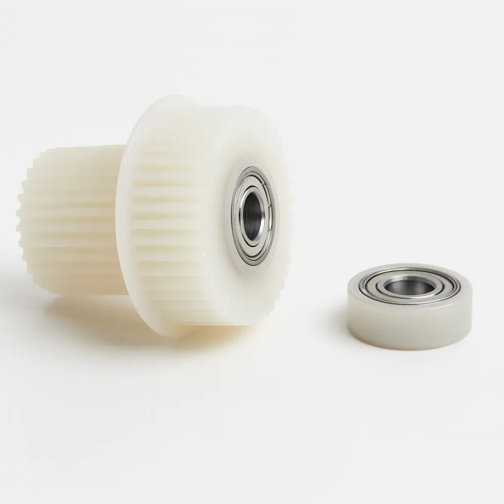 WC5855 26/37 ஃபிக்சிங் டிரைவ் கியர் என்பது ஜெராக்ஸ் ஒர்க் சென்டர் 5855 மல்டிஃபங்க்ஷன் பிரிண்டரில், குறிப்பாக ஃபியூசர் அசெம்பிளிக்குள் பயன்படுத்தப்படும் ஒரு கூறு ஆகும். இந்த கியர் ஃபியூசர் யூனிட்டின் செயல்பாட்டில் முக்கியமானது, இது அச்சிடும் செயல்பாட்டின் போது வெப்பம் மற்றும் அழுத்தம் மூலம் டோனரை காகிதத்துடன் பிணைப்பதற்கு பொறுப்பாகும். அம்சங்கள்: பொருள்: கியர் பொதுவாக மாதிரி மற்றும் வடிவமைப்பைப் பொறுத்து உயர்தர பிளாஸ்டிக் அல்லது உலோகத்தால் ஆனது, ஃபியூசர் யூனிட்டுடன் தொடர்புடைய இயந்திர அழுத்தங்கள் மற்றும் வெப்பத்தைத் தாங்கும் நீடித்துழைப்பை உறுதி செய்கிறது. அளவு: 26/37 பரிமாணங்களால் அடையாளம் காணப்படுகிறது, இது பற்களின் எண்ணிக்கை அல்லது அதன் அளவிற்கு ஒத்திருக்கும், இது உருளைகளை திறம்பட இயக்க பியூசர் அமைப்பில் உள்ள மற்ற கியர்களுடன் சரியாக இணைக்க அனுமதிக்கிறது. செயல்பாடு: ஃபிக்சிங் டிரைவ் கியர் சுழற்சி இயக்கத்தை ஃபியூசர் ரோலர்களுக்கு கடத்துகிறது, இது டோனரை காகிதத்தில் இணைக்க தேவையான வெப்பத்தையும் அழுத்தத்தையும் பயன்படுத்துகிறது. இது பியூசர் அசெம்பிளியில் உள்ள மற்ற கியர்களுடன் இணைந்து செயல்படுகிறது.